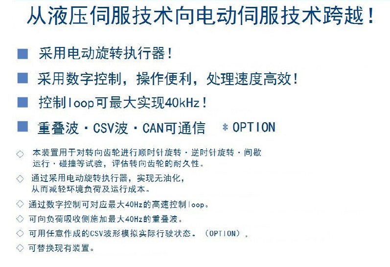 | 當(dāng)前位置:網(wǎng)站首頁(yè)>> 產(chǎn)品中心>> SUM電子機(jī)械-性能及耐久試驗(yàn)>> 轉(zhuǎn)向試驗(yàn)系統(tǒng)