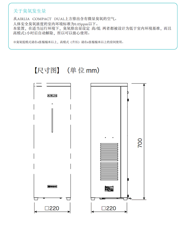 AIRLIA DUAL型號是對應約66m³空間的紫外線臭氧雙功能機型,在紫外線殺菌的同時使用臭氧除臭,臭氧在反應后形成氧氣,安全放心,三檔風速可供選擇,適合家庭使用。